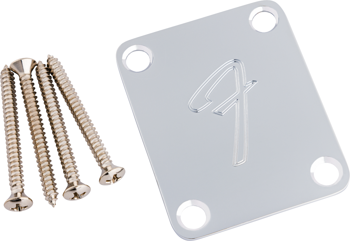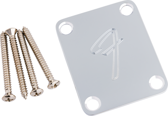 Neck plate - 4-hole with F logo chrome with screws - genuine Fender